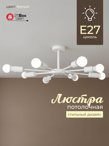 Люстра потолочная на кухню, в спальню, в зал, светильник 21 Век свет Лофт Белая, 8 ламп, Е27