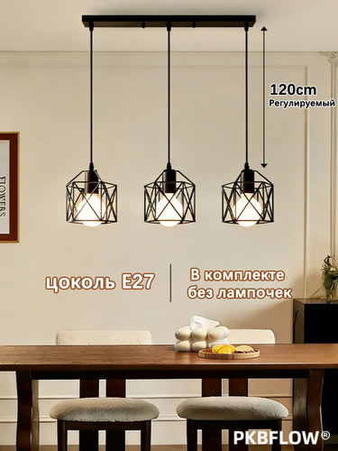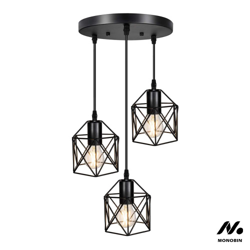 MONOBIN Люстра потолочная подвесная Лофт светильник на кухню, в гостиную и спальню, зал, цоколь E27, 180 Вт,регулировка длины, черная