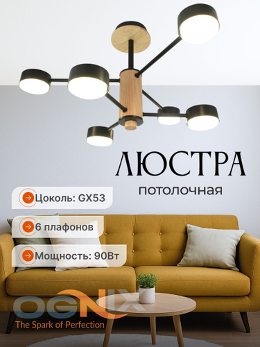Люстра потолочная, светильник в зал, на кухню в спальню или детскую, металлический корпус в стиле лофт. 6 ламп цоколь GX53