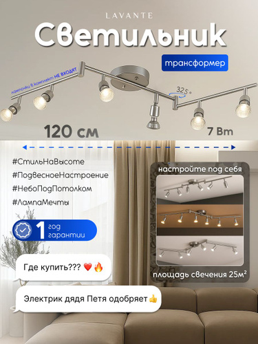 Люстра потолочная светодиодная на кухню, в спальню, в зал, светильник поворотный трансформер, LED люстра лофт 6 ламп