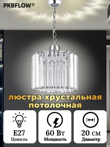 Люстра потолочная хрустальная черная в зал, спальню, гостиную 55 см, JACKSUN