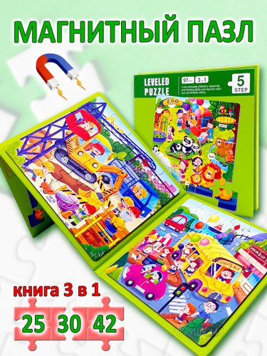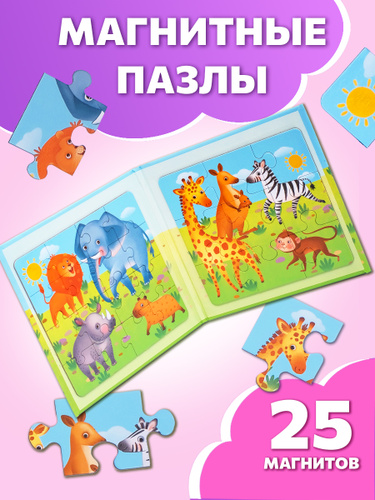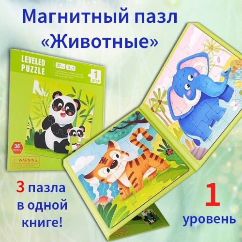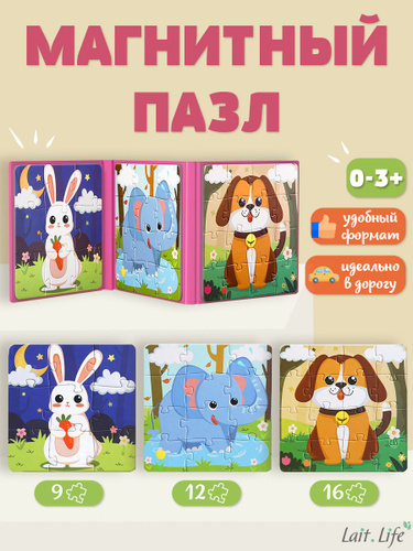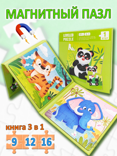 Магнитный пазл для малышей 3 в 1 / Пазл на магнитах игра в дорогу, Животные