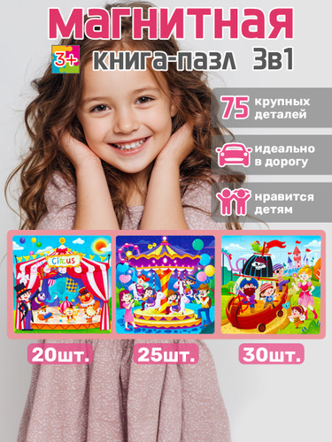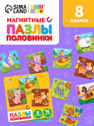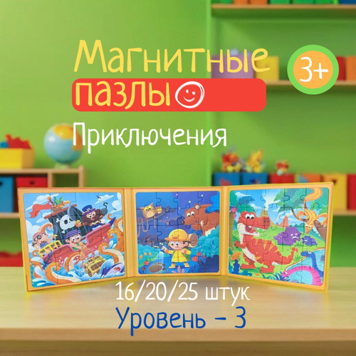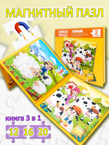 Магнитные пазлы для детей на 20, 16 и 12 деталей