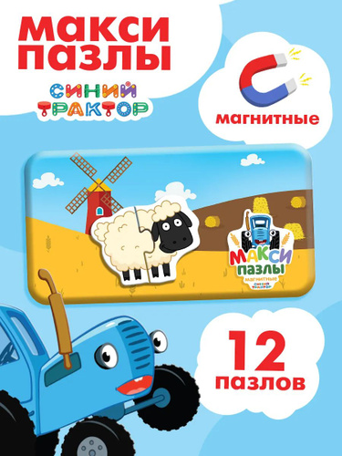 Пазлы для детей, Puzzle Time Синий Трактор, "На ферме", магнитные пазлы для малышей, в металлической коробке