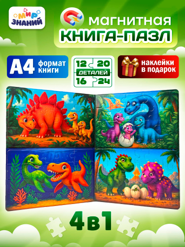 Детский магнитный пазл А4 "Забавные динозавры" развивающая игра
