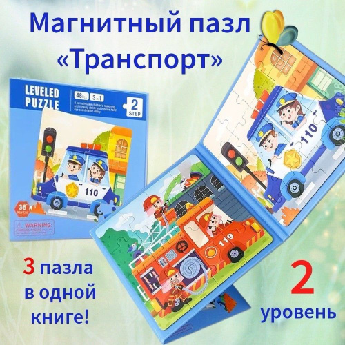 Магнитный пазл для малышей 3 в 1 " транспорт " 2 уровень