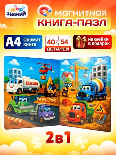 Детский магнитный пазл А4 "На стройке" развивающая игра