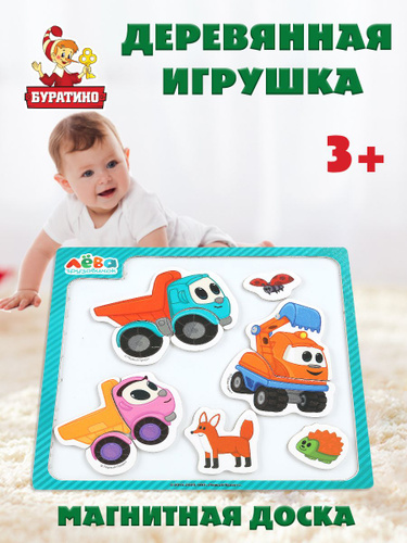 Доска для рисования детская магнитная Буратино с фигурками в виде пазлов Грузовичок Лёва