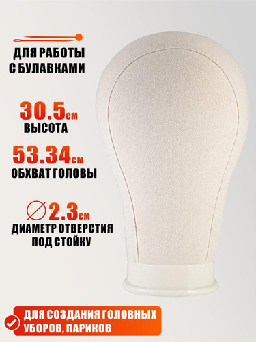 Тканевая голова манекен без волос для париков, украшений и шапок 58,4см