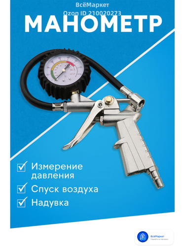 Пистолет для подкачки шин с манометром с жидкостью "МаякАвто"