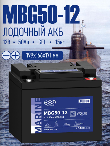 Тяговый аккумулятор для лодочного электромотора WRB MBG50-12 NANO-GEL (MARINE DEEP CYCLE)