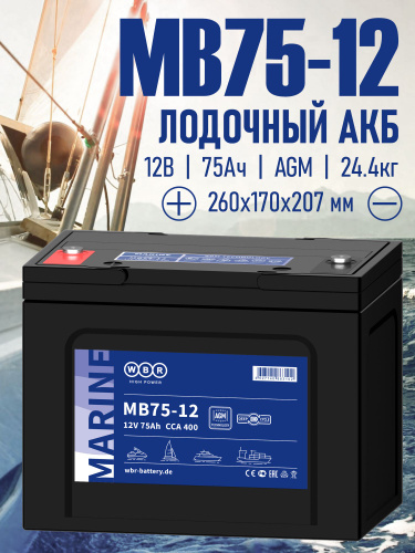 Тяговый аккумулятор для электромотора WBR MARINE MB75-12 (AGM)