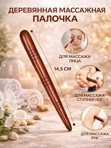 Массажер деревянный для точечного массажа / палочка акупунктурная для тела ног и спины, из натурального дерева 1 шт