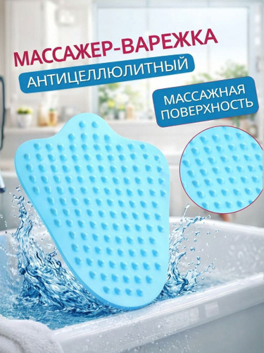 Щетка для массажа тела антицеллюлитная / ручной лимфодренажный массажер 14х12 см / голубая