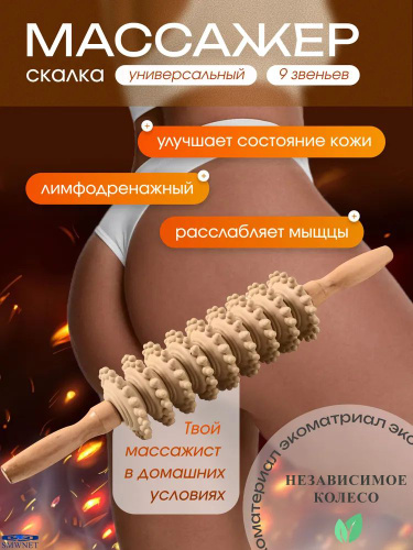 Скалка для массажа деревянная антицеллюлитный массажер