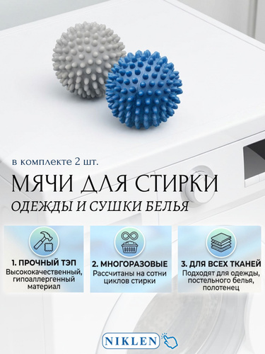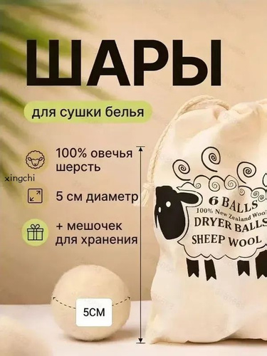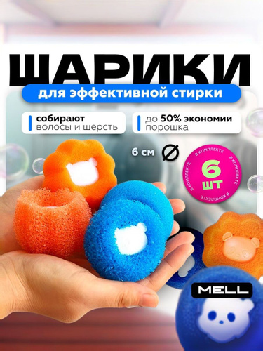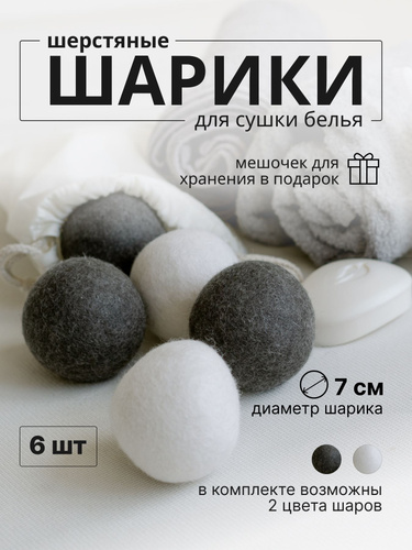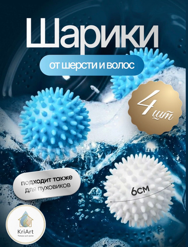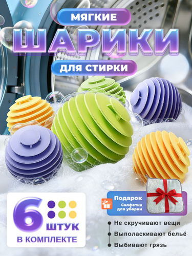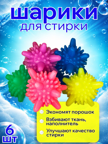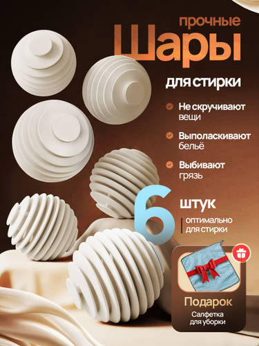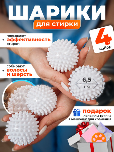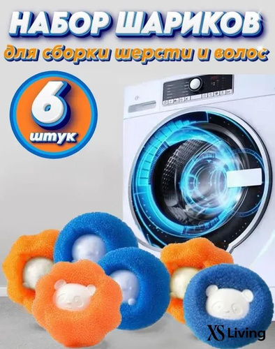 Шарики для стирки 6 шт, для стирки одежды, пуховых изделий, белья, для сушки / ловушка шерсти и волос