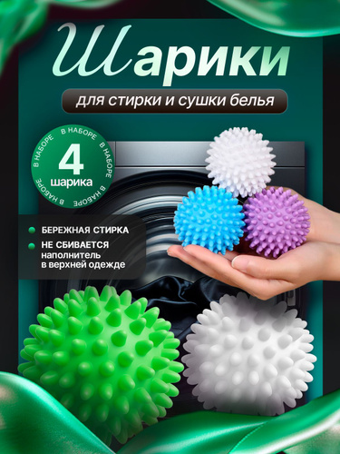 Шарики для стирки и сушки белья 4шт. 4.5x3cm Подходит для небольших стиральных машин.