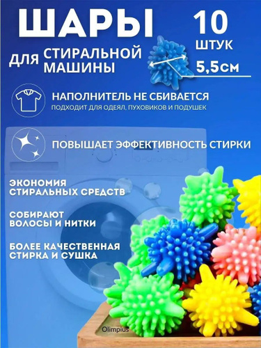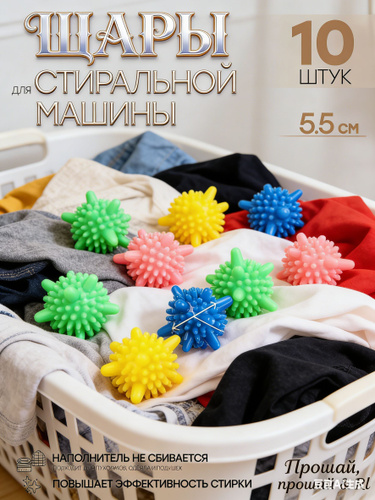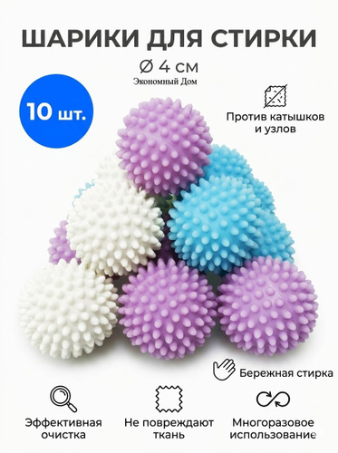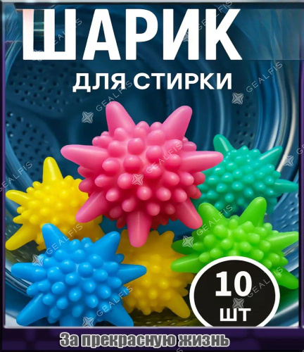 GEALFIS Шарики для стирки 10 шт, 5.5 см. Силиконовые антистатические, предотвращают сминание белья. Для машинки-автомат, сушки пуховиков, цветного белья