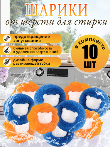 10 шт. Шарики для стирки от шерсти и волос в стиральной машине,Мягкие мячики для сбора катышков и ворса