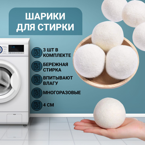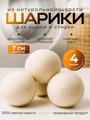 Шарики для стирки, сушки белья из шерсти для стиральной и сушильной машины, 4 штуки.