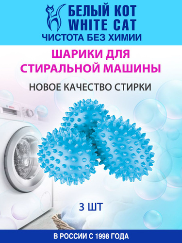 БЕЛЫЙ КОТ - Шарики для стирки в стиральной машине, 3 шт