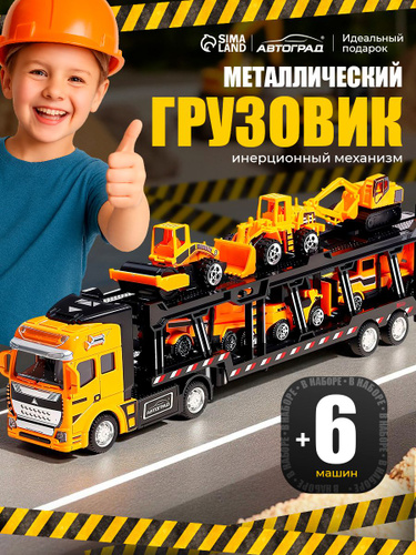 Детский игрушечный автовоз "Перевозчик" / инерционный / 6 машинок