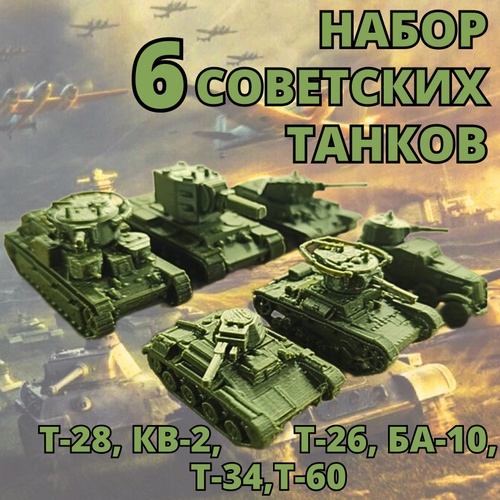 Танки. Набор советских танков 1941г, 6штук, в масштабе 1/100