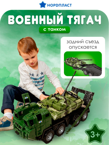 Игрушечная военная машинка тягач с танком, Нордпласт, боевая машина, военная техника, игрушки для мальчиков
