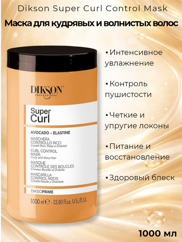 Dikson Маска для кудрявых и волнистых волос с маслом авокадо DiksoPrime Super Curl Control Mask, 1000 мл