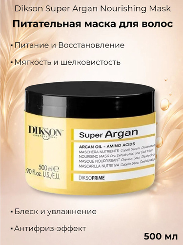 Dikson Маска питательная для сухих волос с маслом арганы, макадамии DiksoPrime Super Argan Nourishing Mask, 500 мл