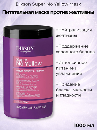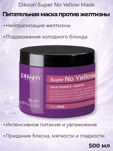 DIKSON Super No Yellow Маска для волос против желтизны для светлых, обесцвеченных или седых волос, 500 мл