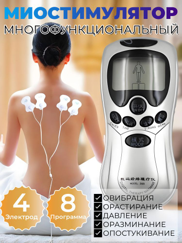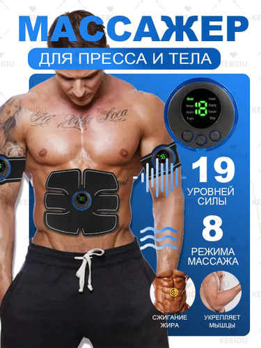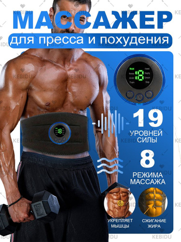 Миостимулятор для пресса+ микротоковый массажер (с электродная пластина) для шеи/тела/живота/спины, антицеллюлитный,8 режимов/19 власть