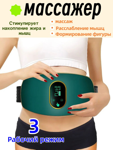 Массажный пояс для похудения вибрационный с подогревом зеленый