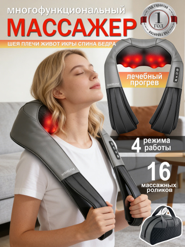 SIBIRLINK Массажер для шеи в комплекте с чехлом и электрический с подогревом16 массажных роликов 4 режима работы для дома 1 год гаранти