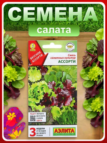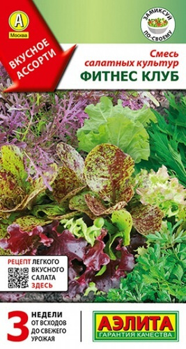 Смесь салатных культур "Фитнес клуб" семена Аэлита для дома, балкона, подоконника и огорода, 0,5 гр