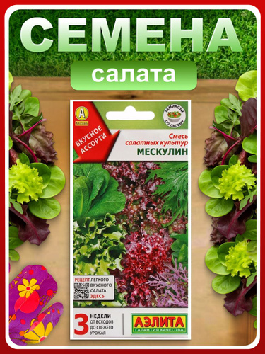 Семена смесь салатных культур "Мескулин", Смесь, 0,5 г, однолетние цветы, для дачи, сада и огорода, клумбы, в открытый грунт