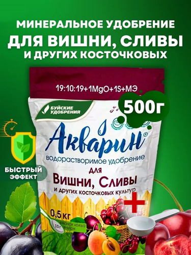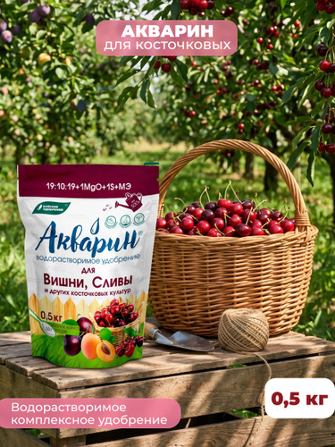 Акварин удобрения для сада и огорода, для вишни, сливы и косточковых культур 0,5 кг, водорастворимое, с микроэлементами, для подкормки и опрыскивания