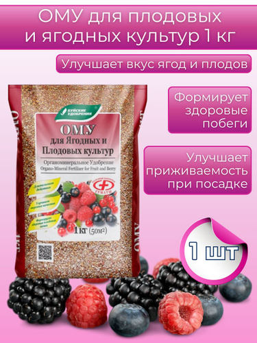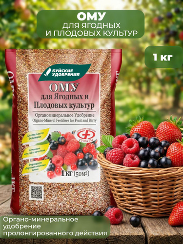 ОМУ для ягодных и плодовых культур 1 кг органо-минеральное удобрение для сада и огорода, для клубники, малины, смородины