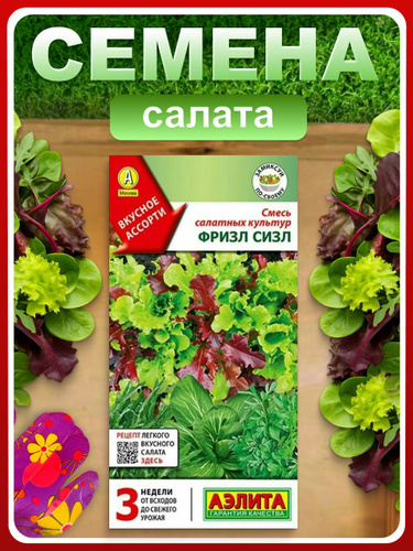 Семена смесь салатных культур "Фризл сизл", Смесь, 0,5 г, однолетние цветы, для дачи, сада и огорода, клумбы, в открытый грунт