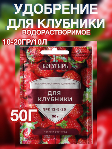 Удобрение для клубники, земляники, малины, для рассады ягодных культур. "Богатырь", 1 шт, 50 грамм, "Лама Торф"