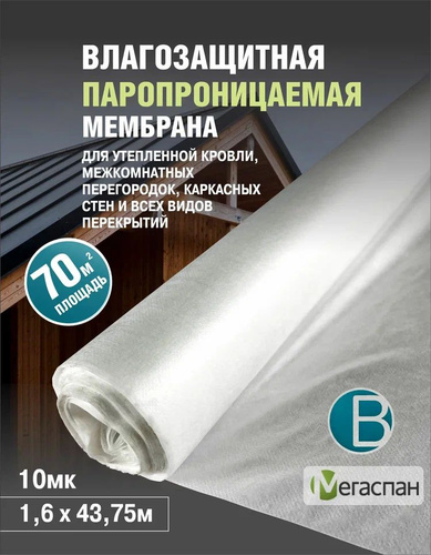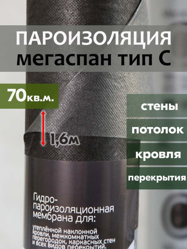 Пароизоляция МЕГАСПАН С (70м2) 1,6м*43,75п.м. гидро- пароизоляция мембрана для утепленной наклонной кровли, межкомнатных перегородок и каркасных стен