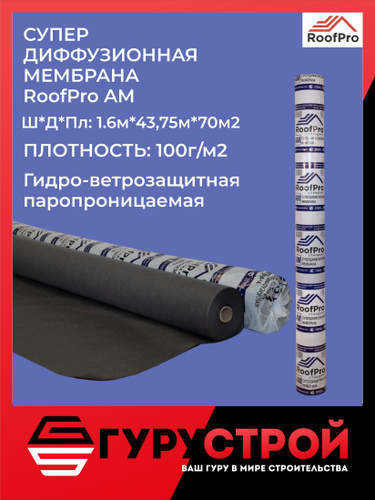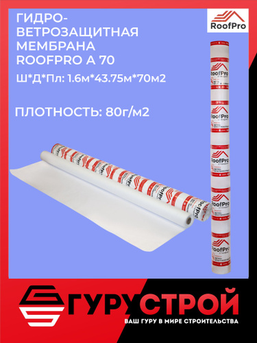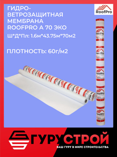 Гидро-ветрозащитная мембрана RoofPro А ЭКО, 70 м2 / Ветро-влагозащитная мембрана RoofPro A