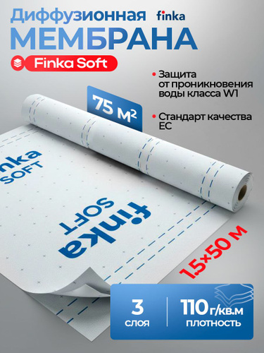 Супердиффузионная мембрана Finka Soft 110 г/кв.м 1,5*50м 75м2 / Ветрозащитная мембрана для кровли, для стен