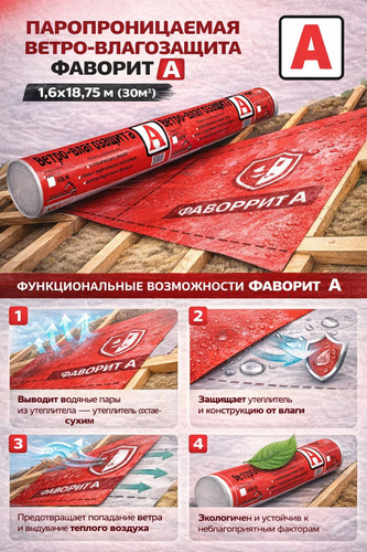 Паропроницаемая ветровлагозащитная мембрана Фаворит 55 А 1,6х18,75м (30м2)