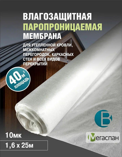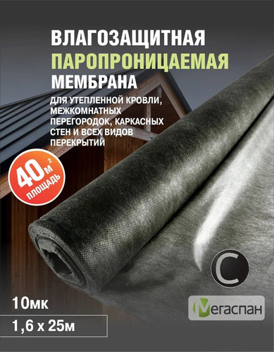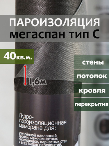 Пароизоляция МЕГАСПАН С (40м2) 1,6м*25п.м. высокопрочная гидро-пароизоляционная мембрана для утепленной наклонной кровли, межкомнатных перегородок и каркасных стен