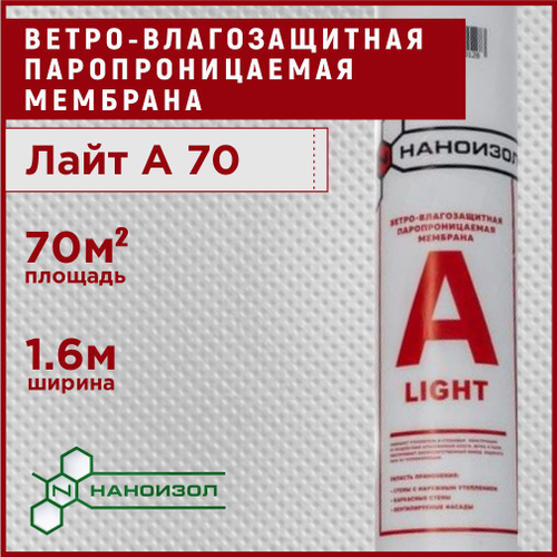 Ветрозащитная мембрана 70 м2 НАНОИЗОЛ Лайт A для стен, потолка, перегородок и кровли