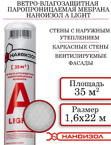 Ветро-влагозащитная, паропроницаемая мембрана НАНОИЗОЛ А (A) LIGHT 35 м2