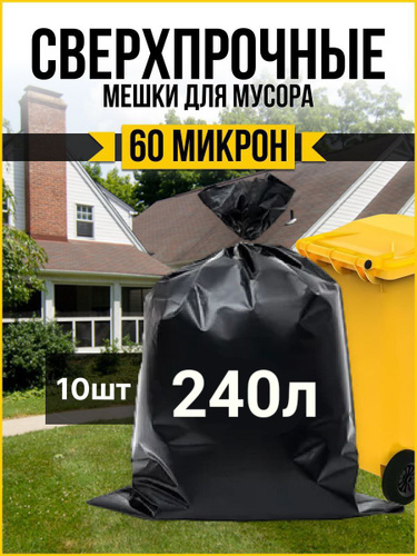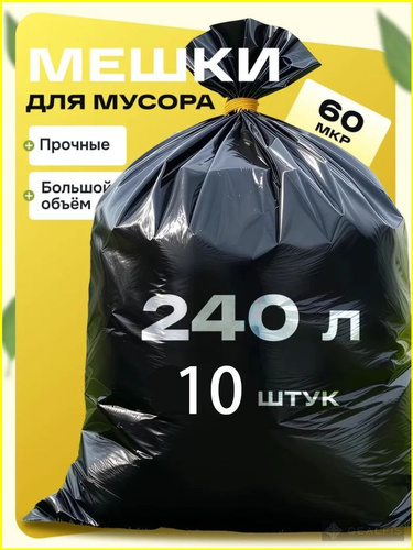 Мешки для мусора 240 л прочные большие / мусорные пакеты для больших баков /для переезда.мешки для пищевой продукции полимерные
