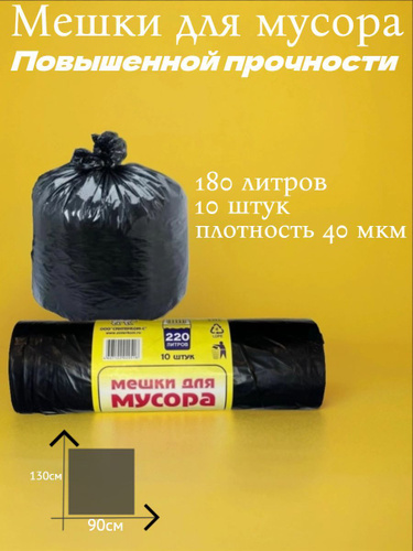 Мешки для мусора 180 л. прочные 10 шт