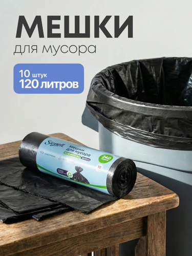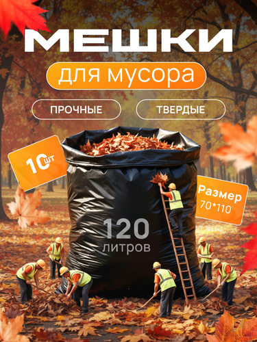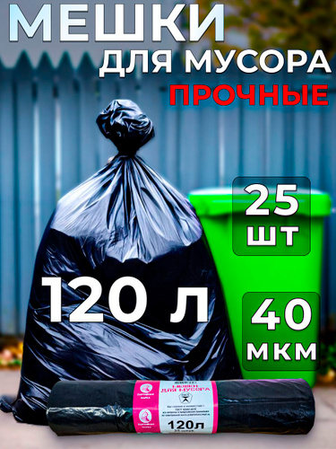 Мешки для мусора 120 л 10 шт 40 мкм мусорные пакеты прочные плотные
